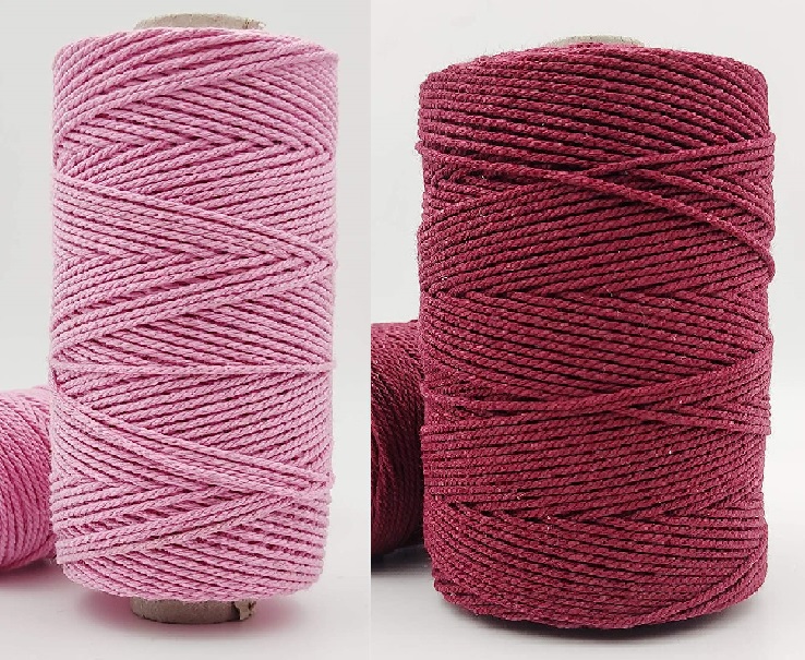 ProKart Twisted Piping Macrame Cotton Cord/Dori Thread (50 Meters, 1.5mm) for Macrame DIY and Other Projects Pack Of 2 Pink & Maroon